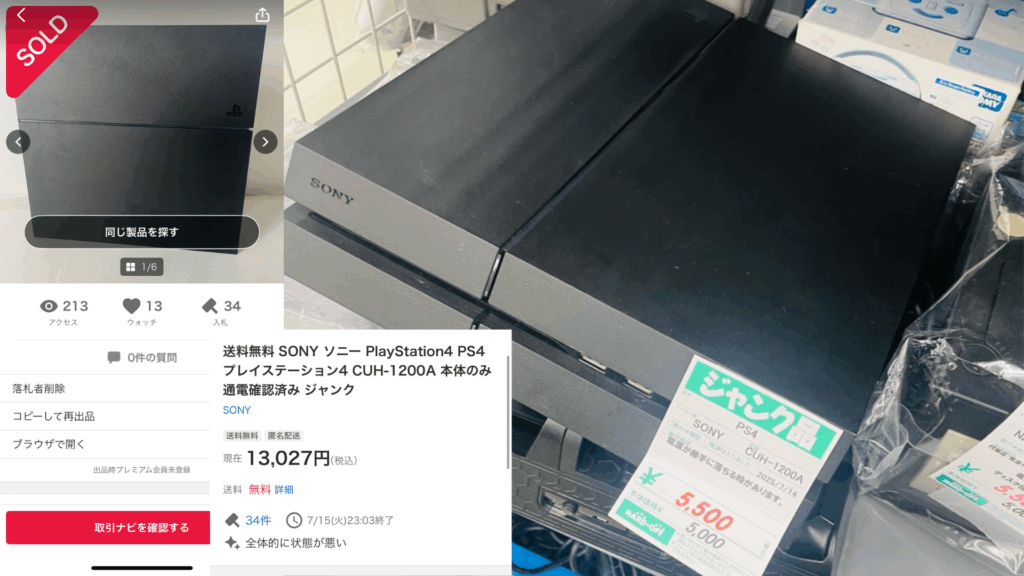 → 価格がかなり落ちてて、仕入れコスト的にアリだった - ジャンクのPS4って意外と需要がある