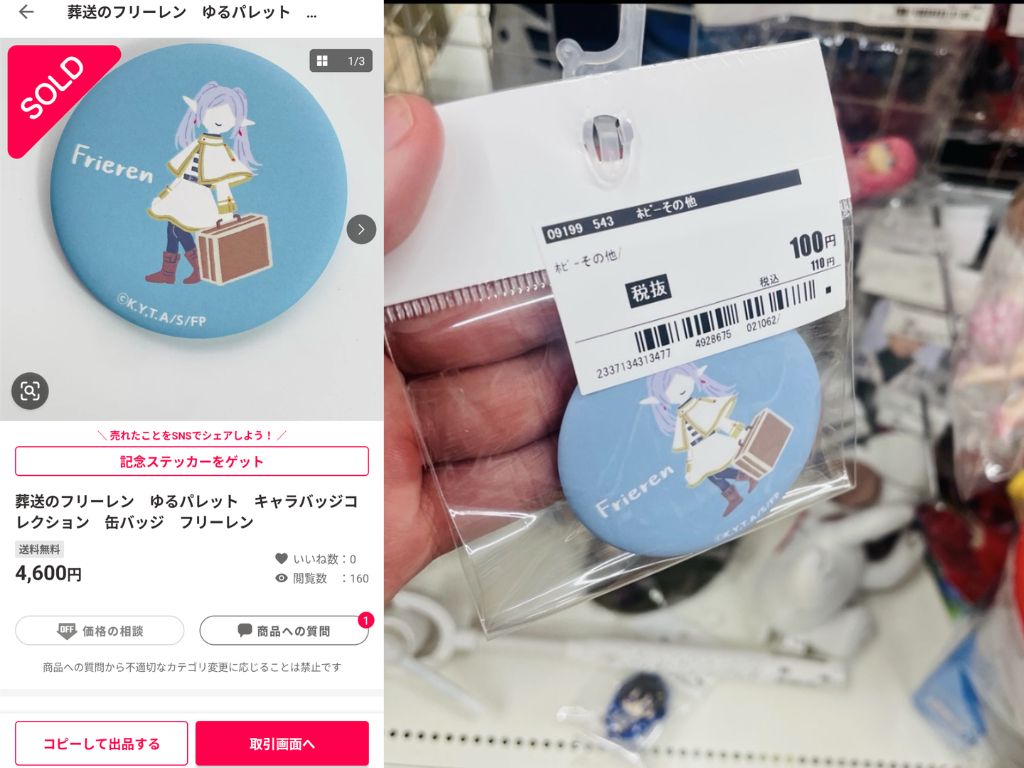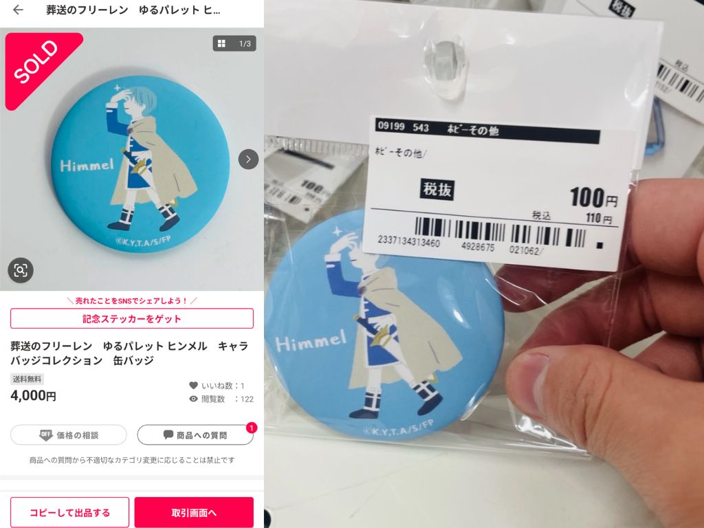 リサーチしたきっかけは、アニメ放送期間中なのにデフォルメ系のフリーレンの缶バッジってあまり見かけないなと思ったからです。デフォルメ系は女性からの需要のほうが高い印象ですね。