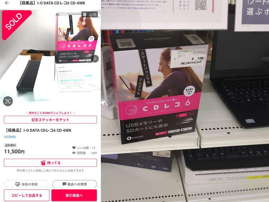 価格差が取れている要因は、おそらくCDレコ4とか5の古いモデルの相場で値付けされたか、もしくは本体のみの相場と箱付きの相場のズレかなと。