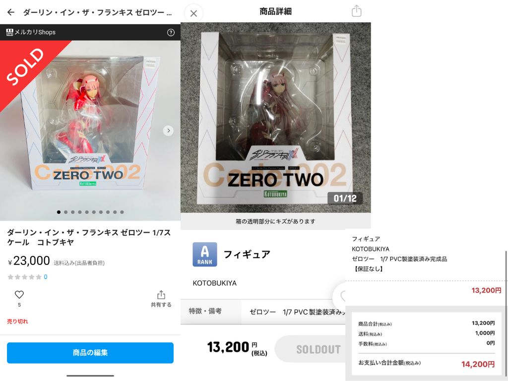 ほかにもダリフラのゼロツーは色々高値で売れてるので、見てみたら面白いかなと思います。