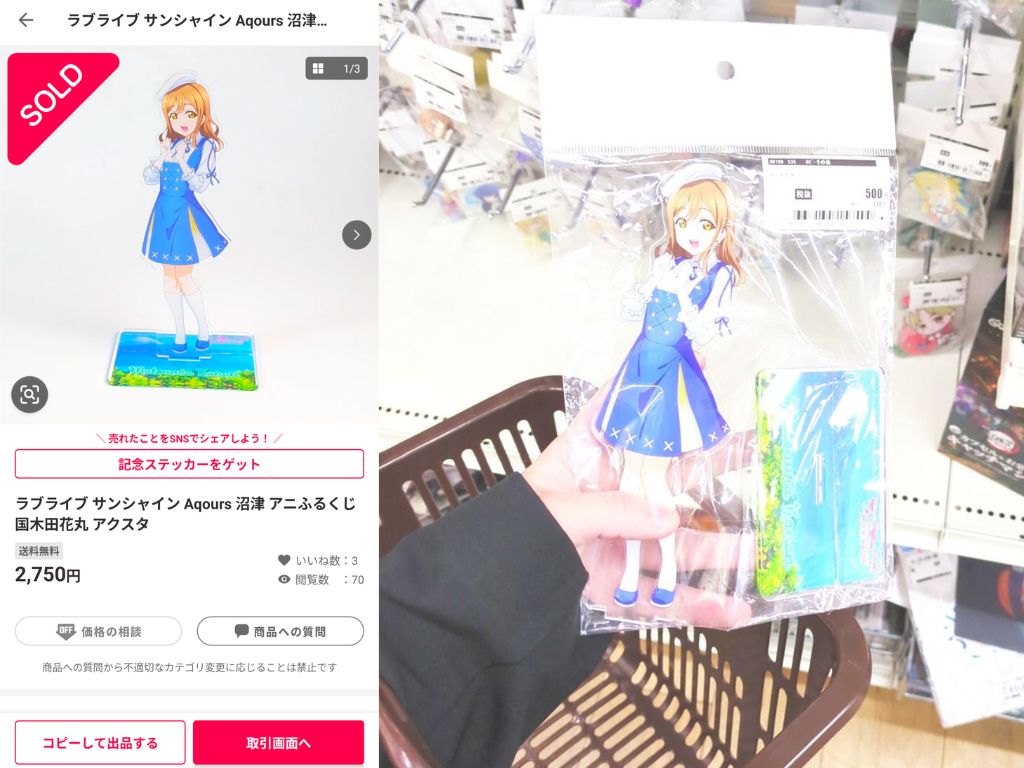 ボカロは「曲単位」でファンがつくっていう特徴があって、たとえば初音ミクの缶バッジでも曲ごとの衣装デザインで高値になってるやつがあったりします。なのでボカロ系は仕入れのポイントとしてひとつ持っておくとよさそうですね。