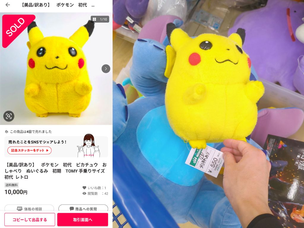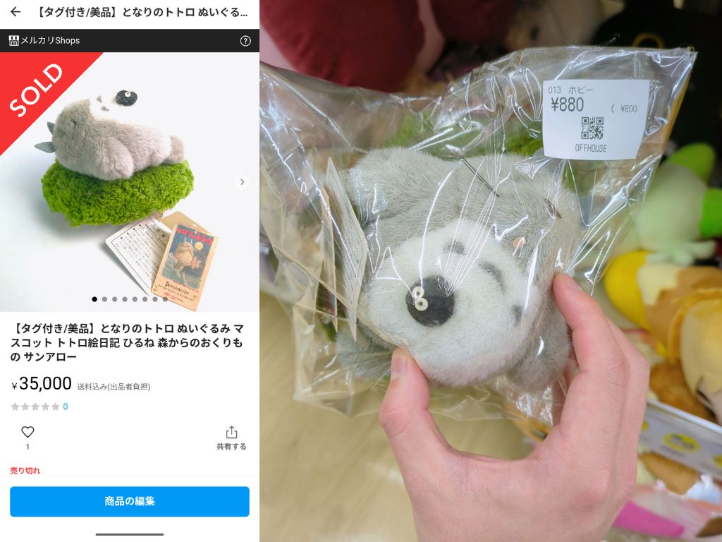 店舗で安く値付けされていた理由としては、引っ越しシーズンや新生活のシーズンで買取量が多かったこと、そのためほとんどの場合、ぬいぐるみなどは安価なものが多いので値付けの優先順位が下げられることが起きていたのかなと。それらが重なって、トトロぬいぐるみの小さいサイズくらいの値付けになったのだと思われます。