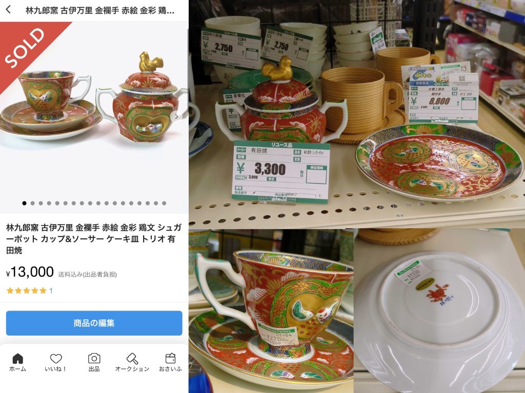 ハードオフって状態の悪い食器はあんまり置いてないので、未使用に近いコンディションで出しました。仕入れた時点で新旧ロゴの価格差がさほどなくて、新ロゴのほうが若干安かったので、1脚4,000円くらいの計算で出して割とすぐ売れた記憶です。
