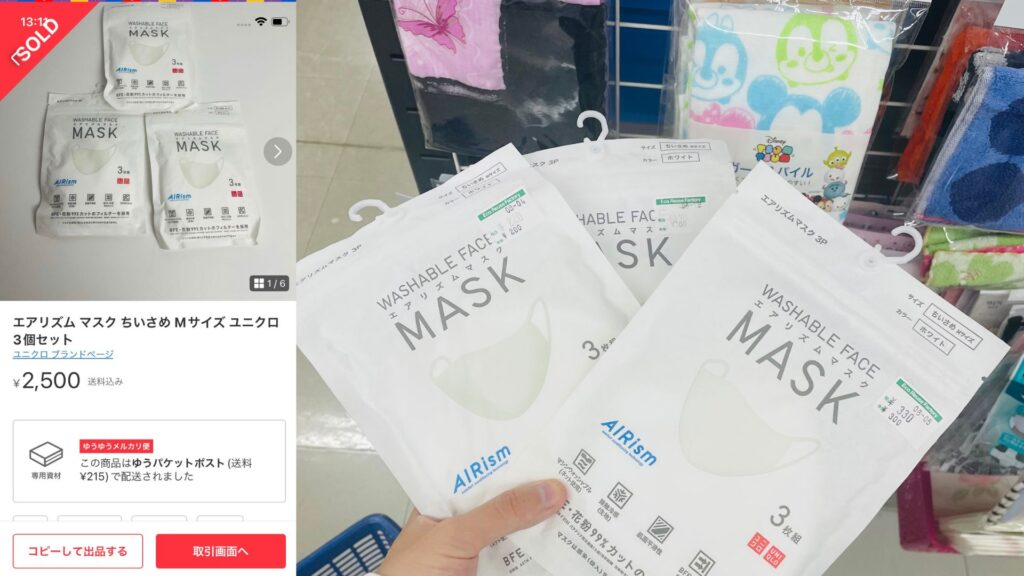 マスクのコーナーはあまり他の人も見ていないので、ユニクロのマスクは残ってますね。